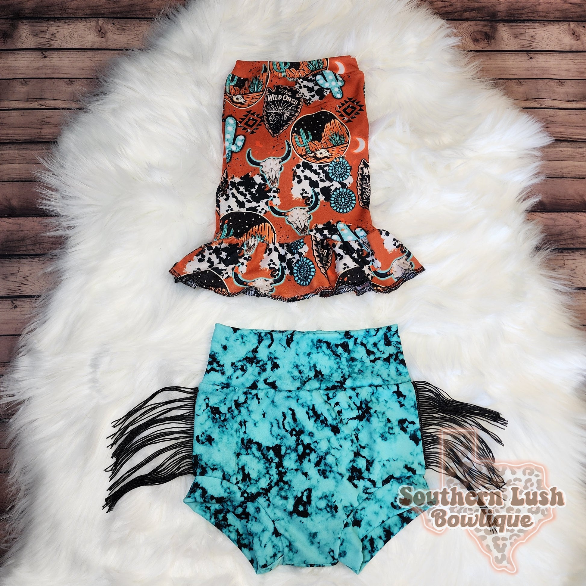 Full length ruffle Tube Top and Bummies with Fringe